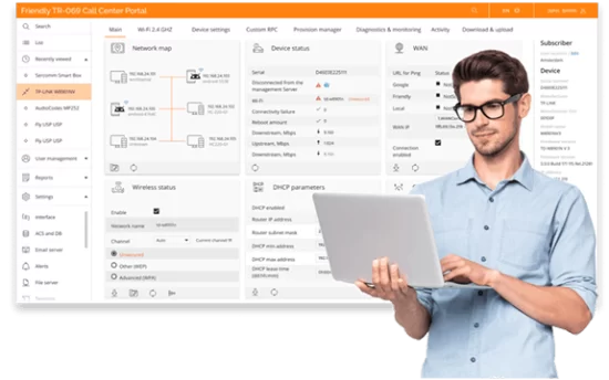 Met het apparaatbeheerplatform van Friendly kunnen klanten eenvoudig nieuwe apparaten automatisch verbinden en instellen. Het platform maakt het ook mogelijk om prestaties te volgen, firmware op afstand te configureren en bij te werken, gegevens te verzamelen en te analyseren en de klantenservice voor abonnees te verbeteren.